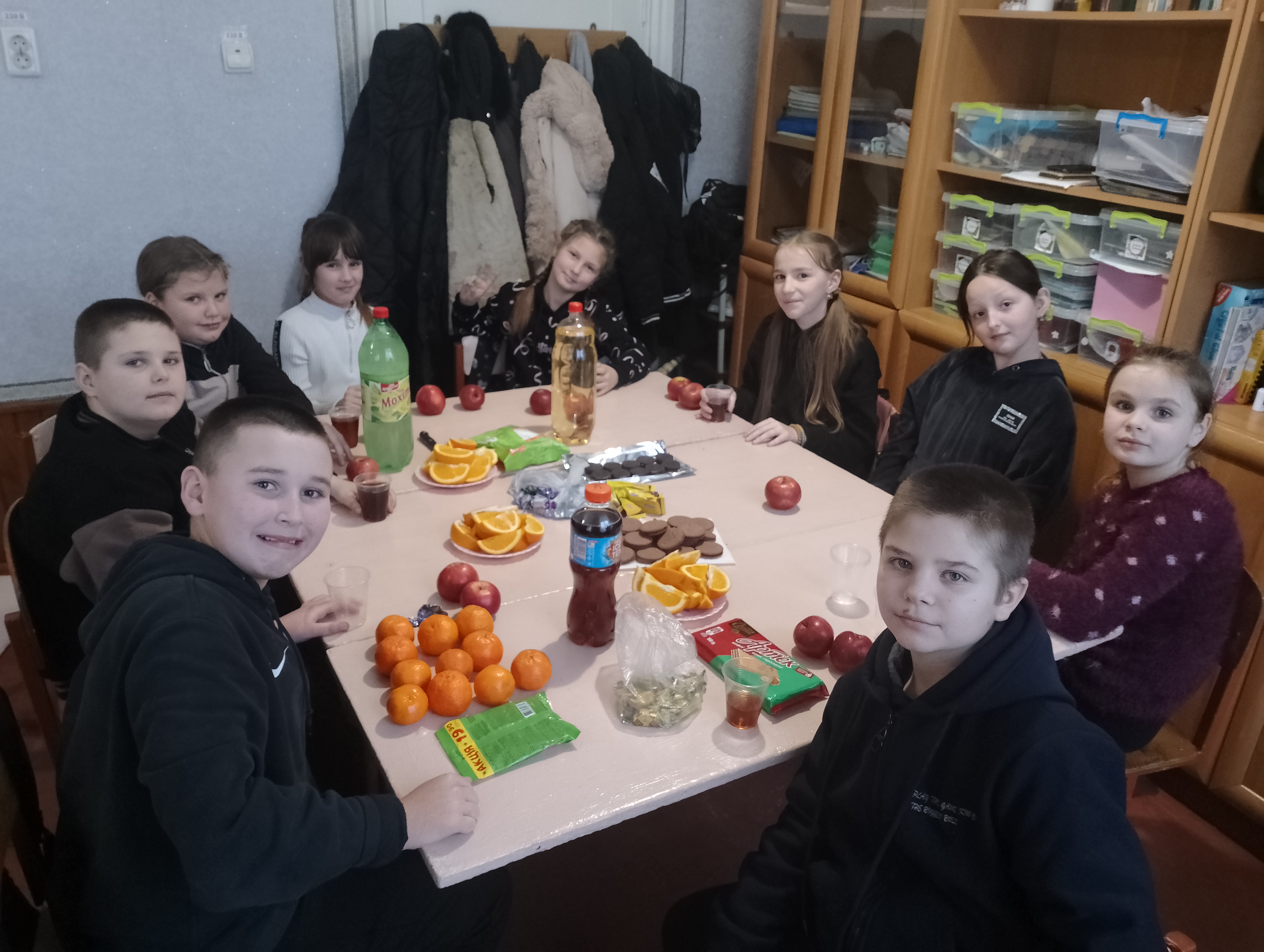 Чаювання у 5 класі☕кожен мав принести смаколик на першу букву свого імені 🍊🥐🥝🍪🍬